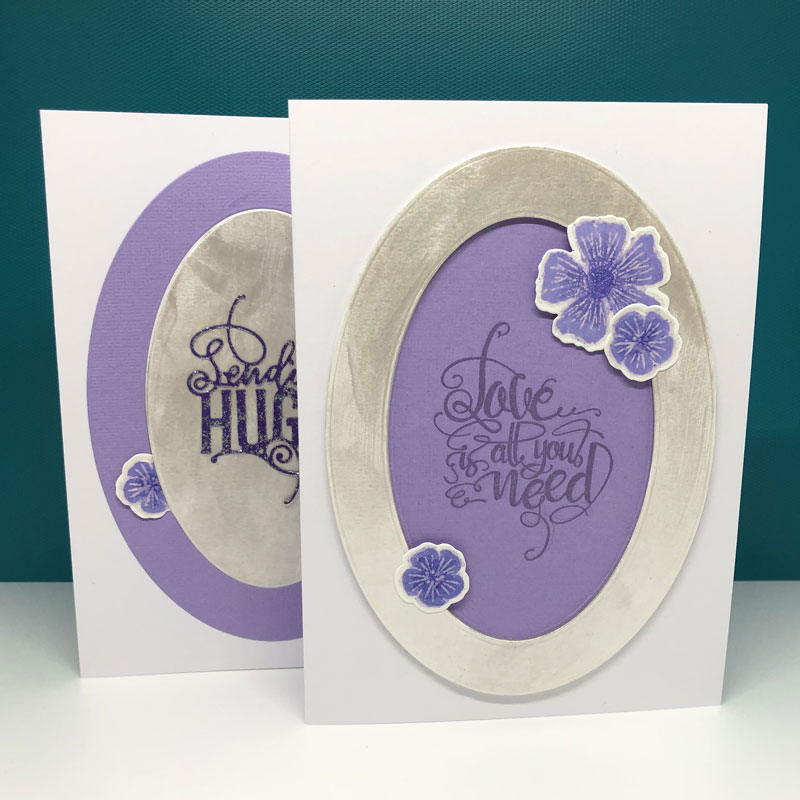 Duo of oval frame cards in purple and shining silver – TCK 22 – Oval Frame.