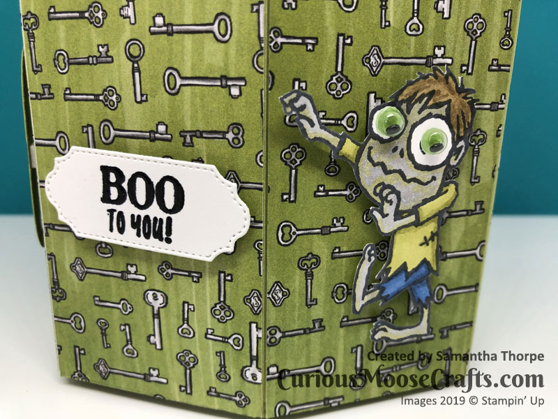 I went for the colour Old Olive to go with my little zombie man and so chose some matching patterned paper from the Bird Ballad DSP.