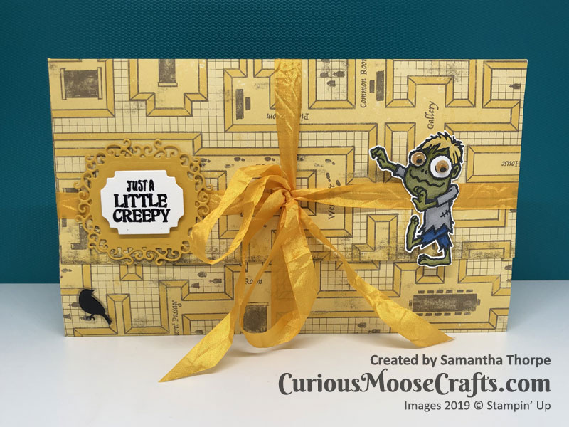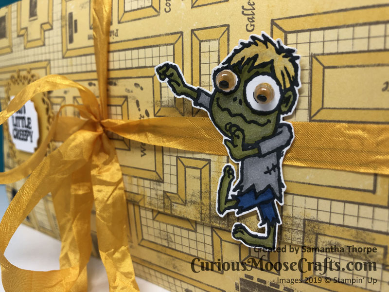I’m also loving the gorgeous crinkly Crushed Curry ribbon and my little zombie guy from Boo To You. The google eyes even match the Crushed Curry! Matchy matchy spooky spooky.