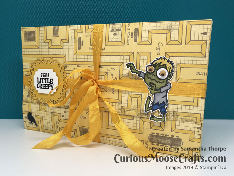 I’m also loving the gorgeous crinkly Crushed Curry ribbon and my little zombie guy from Boo To You. The google eyes even match the Crushed Curry! Matchy matchy spooky spooky.
