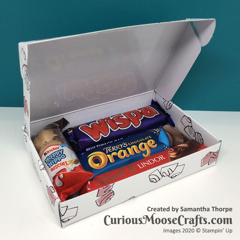 Little multipack chocolate bars fit in these boxes great, and my mums face when she opened the box was an image. 🙂