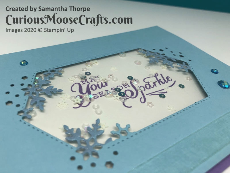 Shaking it up for day 4 of Snowflake Spendor week with a shaker card. These snowflake sequins aren’t part of the suite but coo-ordinate great.