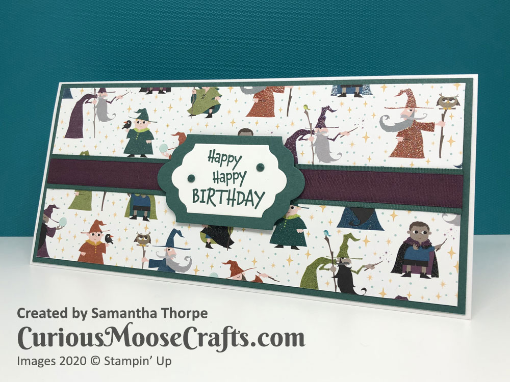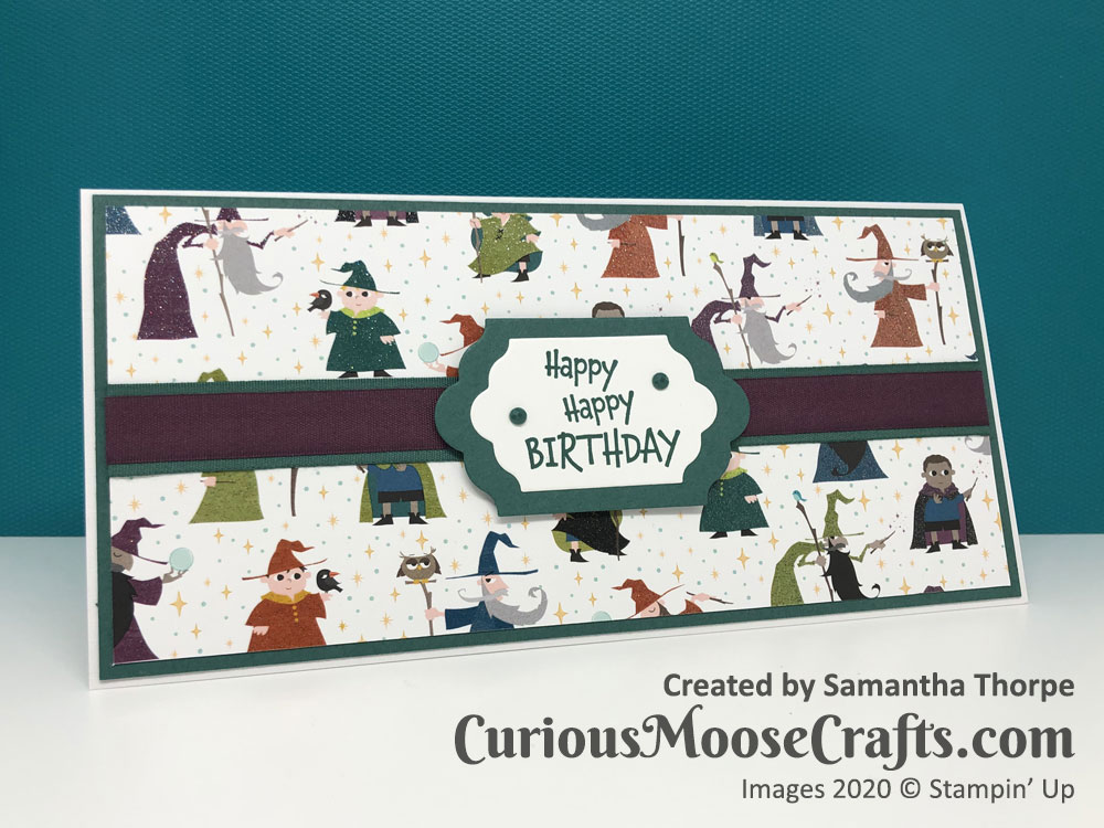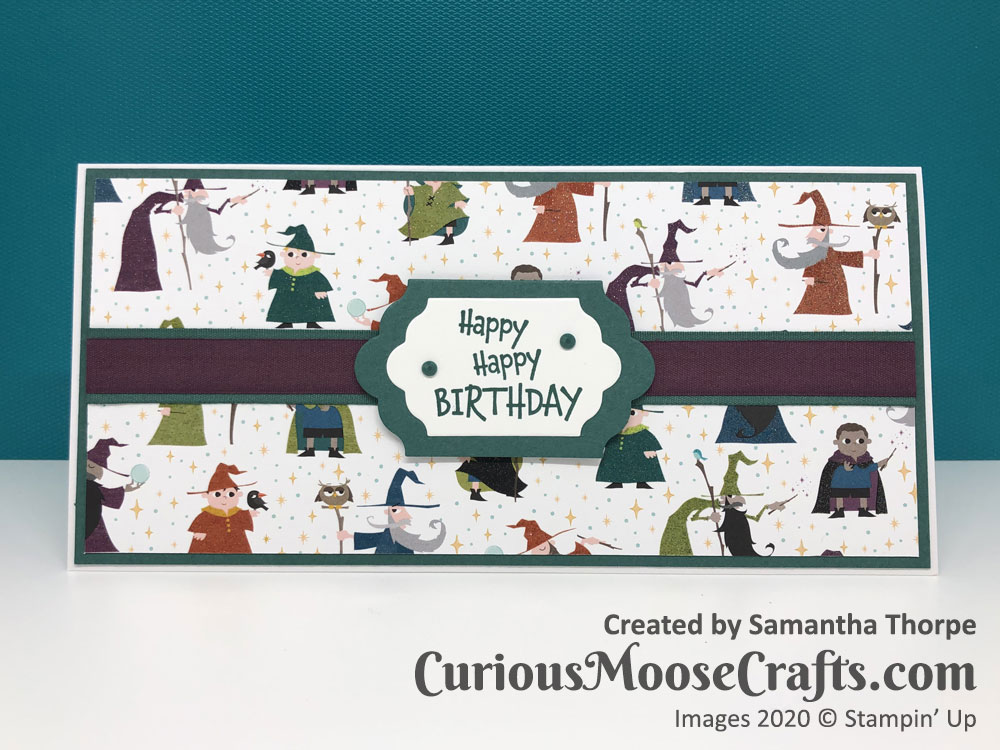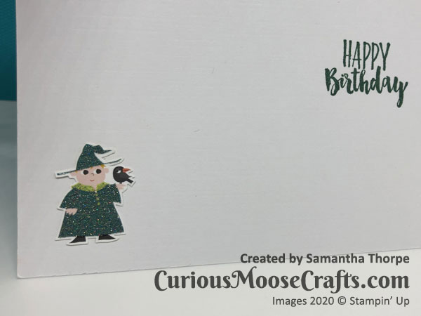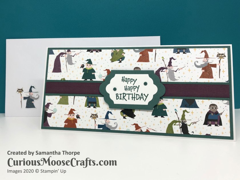 It’s good to use some older supplies and I enjoyed making this card for my nephews birthday. Even cutting out the little wizards for the inside/envelope. 🙂