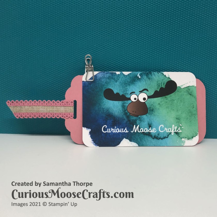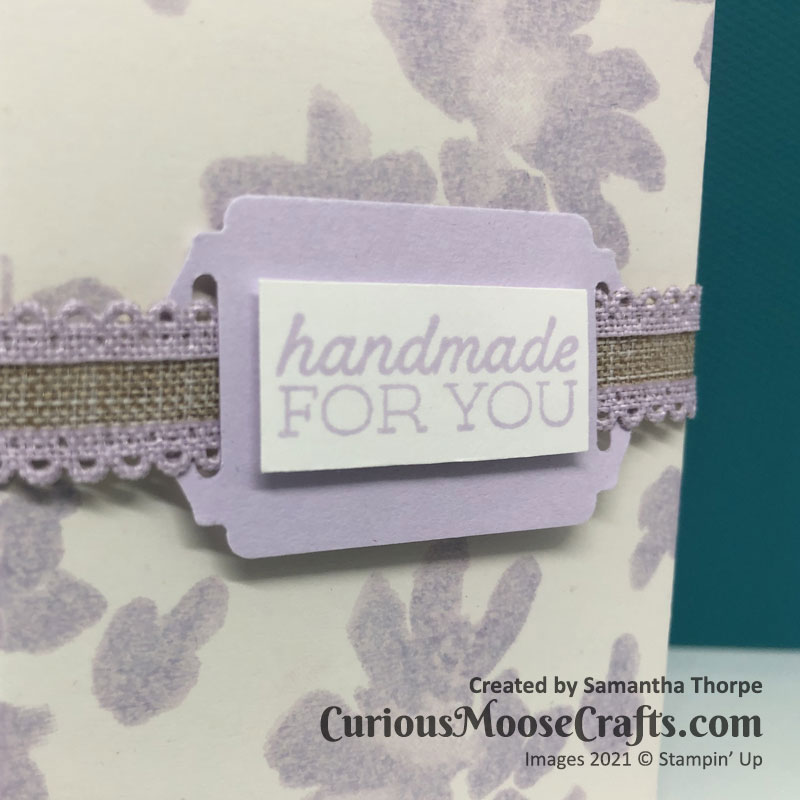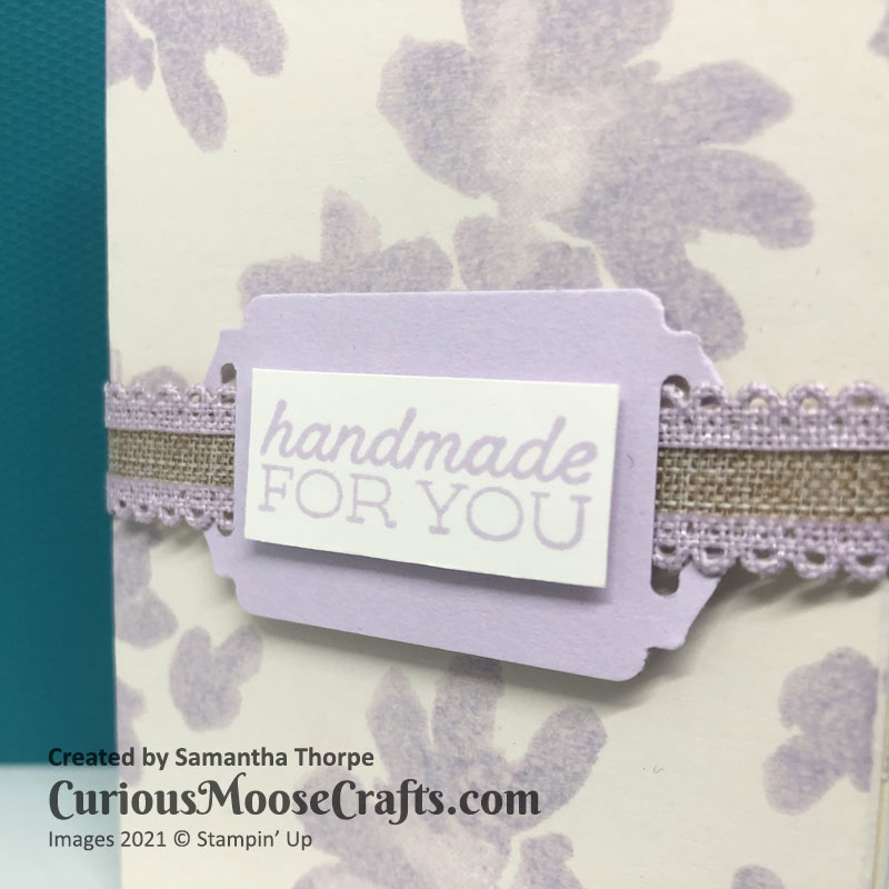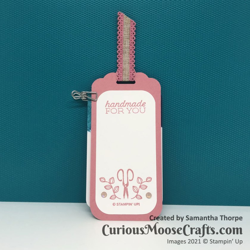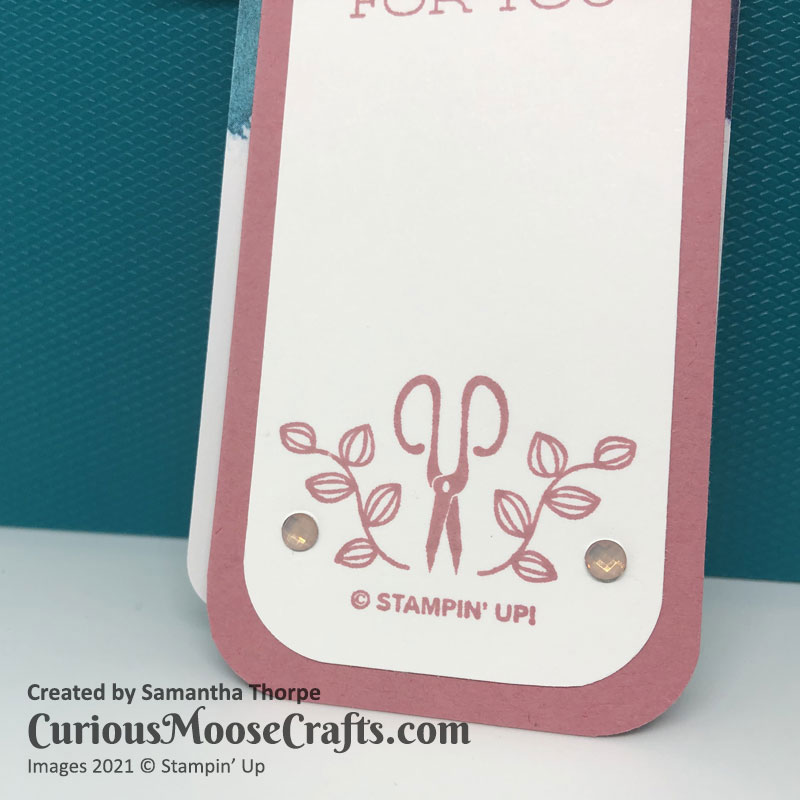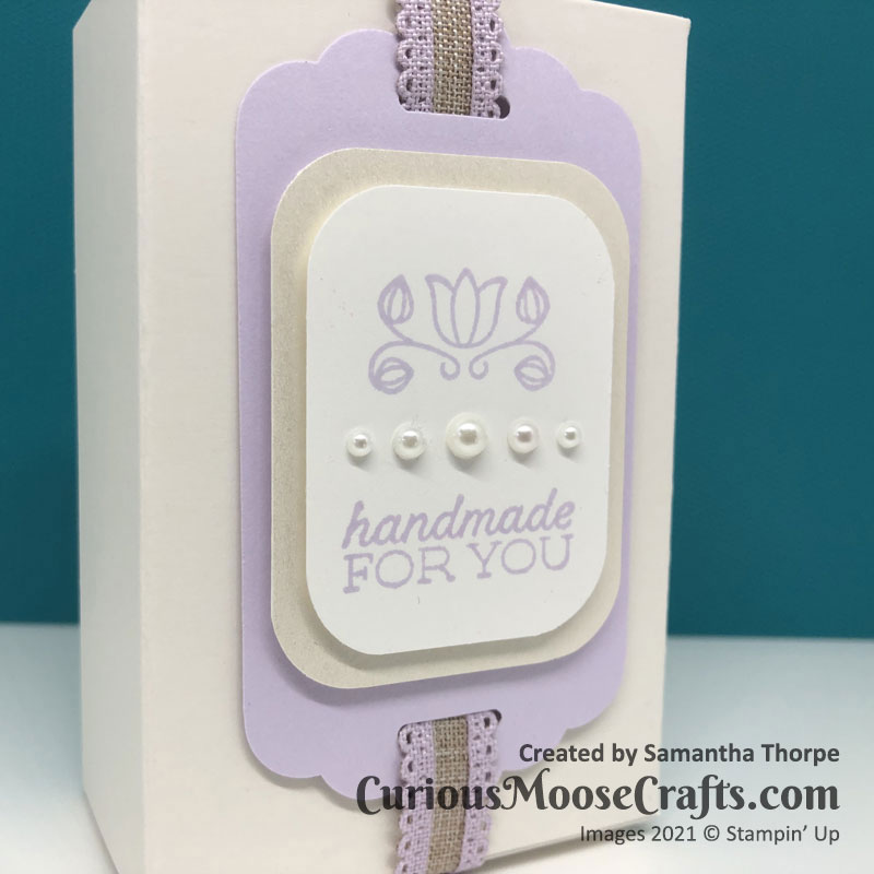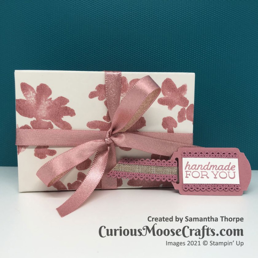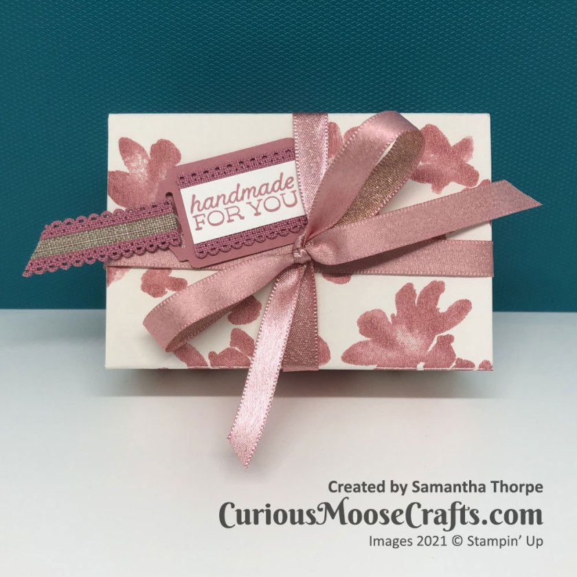 I’ve matched Rococo Rose with Blushing Bride metallic ribbon here. With a tiny little tag which you can enclose in the box along with whatever goodies you fill it with.