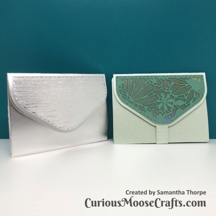 On the silver wallet I added magnets for closure, the green I used the dies available to create the little belt.