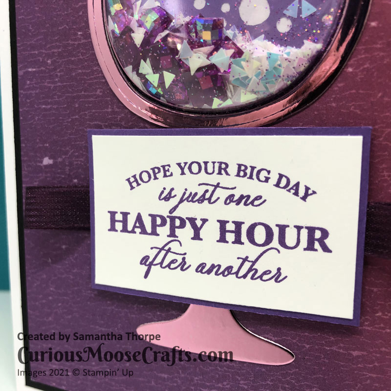Purple purple purple! This card was made for my sisters birthday. I used the Hydrangea Hill Mercury Glass Designer Acetate (say that 10 times fast), as the back of the glass as I think it looks like bubbles. For the outline of the glass itself I used a foil from the Love You Always Foil Sheets.
