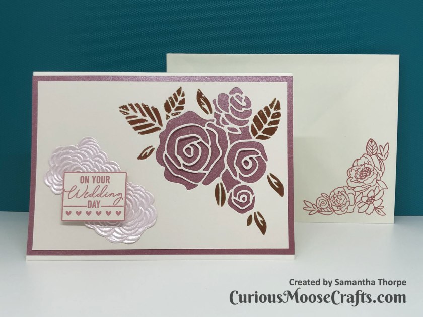 I cut out pieces of the Pink Petals paper to put behind my sentiment and filled in the die cut leaves with the Olive Branch nuvo drop.