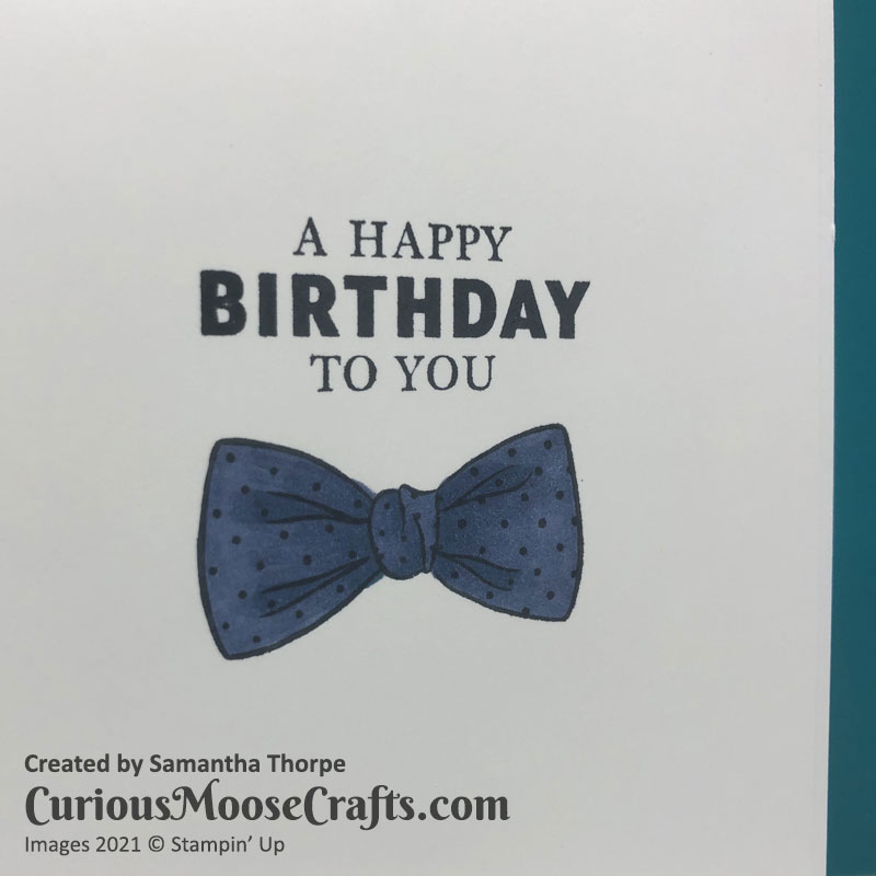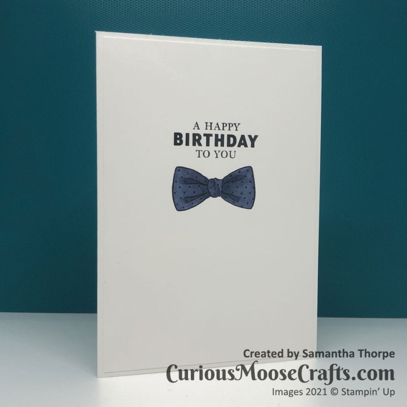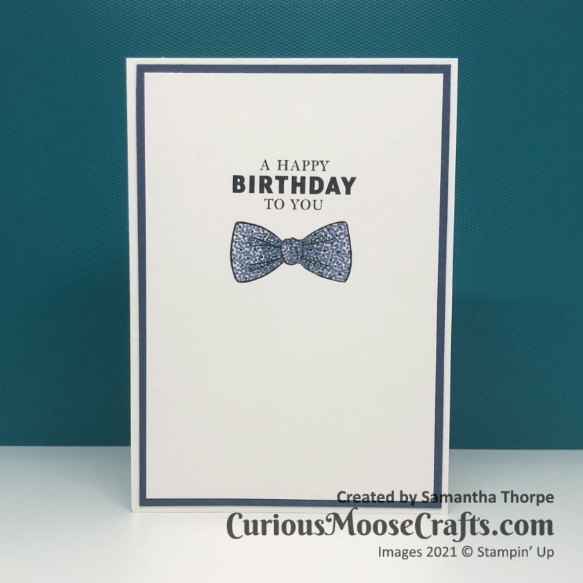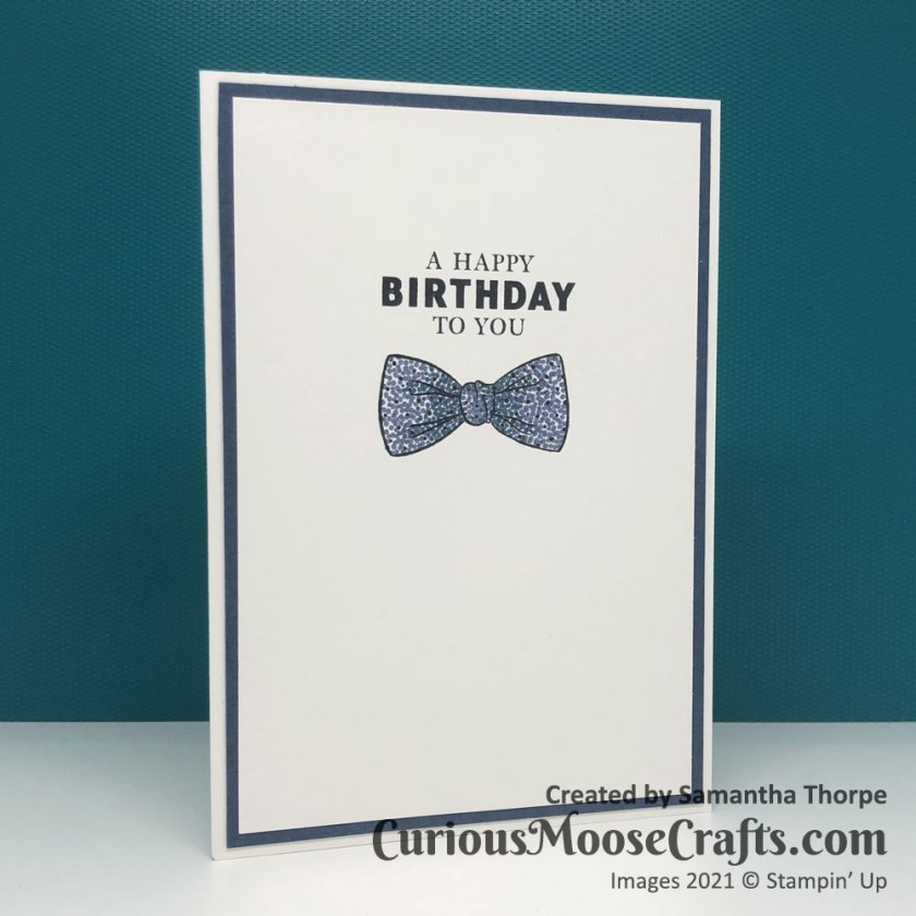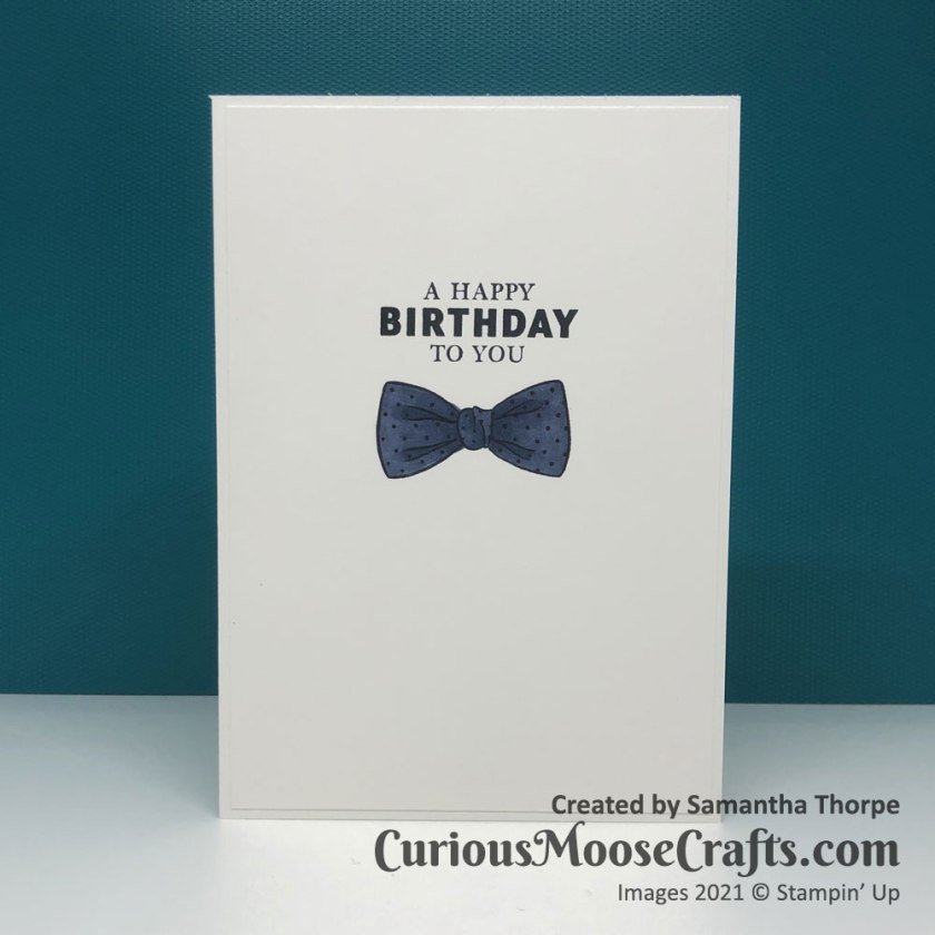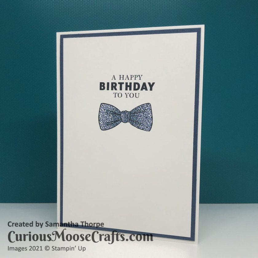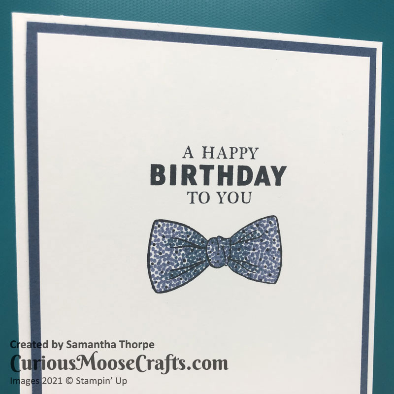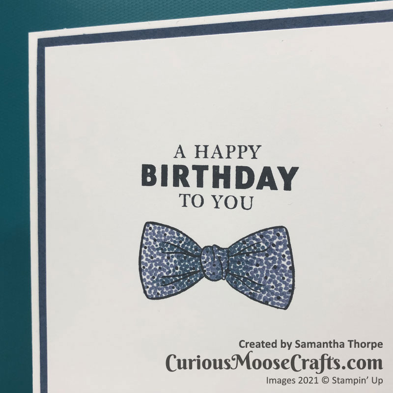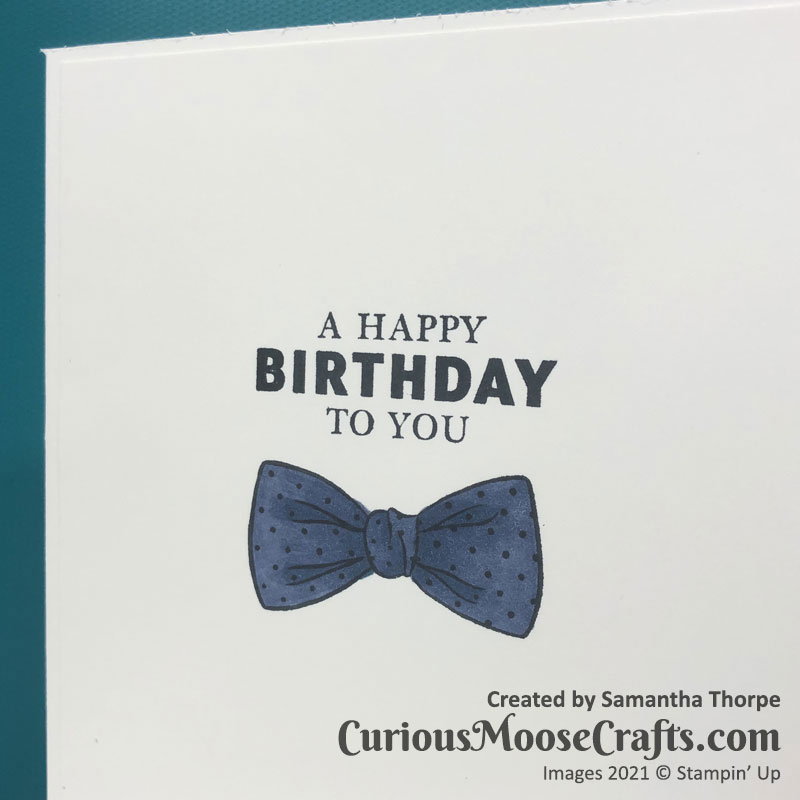 This time I decided to play with the Handsomely Suited stamp set. I made use of the Stamparatus to get the same placement of the images multiple times. It’s a really good tool for making multiples of the same design – perfect for Christmas cards!